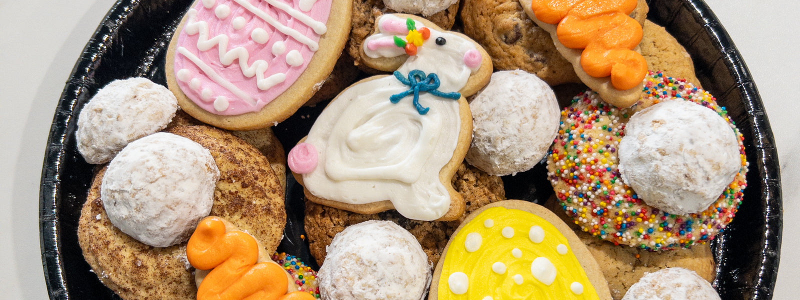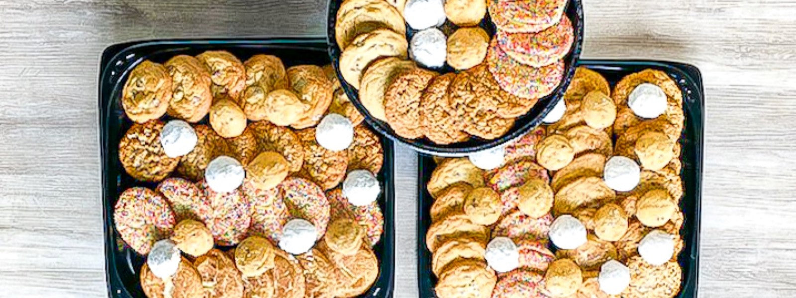 This 2 dozen cookie tray is packed with 24 delicious and freshly-baked favorites. Includes chocolate chip, oatmeal raisin, sprinkle, and snickerdoodle, along with our signature wedding shortbread cookies. Satisfy any sweet tooth!